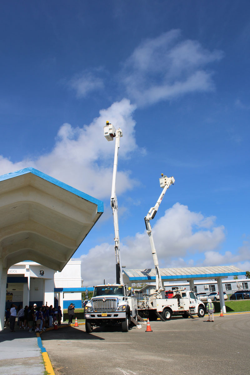 The second portion of the presentation was held outdoors in the school lot, where students learned about careers as a lineworker. The T&D lineworker team, led by Kyle Siguenza. Line Electrician Supervisor along with Jacob Gumataotao, Line Electrician Leader; Shaun Taitano, Line Electrician Leader; Darren Dunstan, Line Electrician II; Matthew Toves, Line Electrician II; Jordan Aguon, Line Electrician I, discussed their duties and responsibilities as lineworkers to include a demonstration on the proper use of their PPEs and tools.
